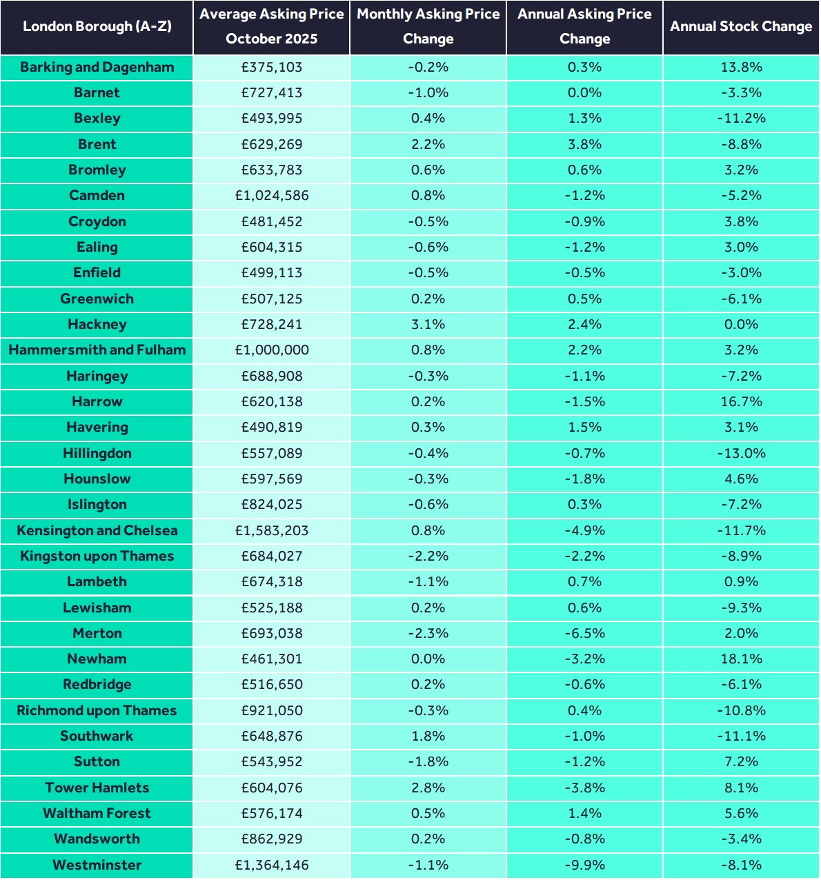 Borough by borough London market trends are also included.