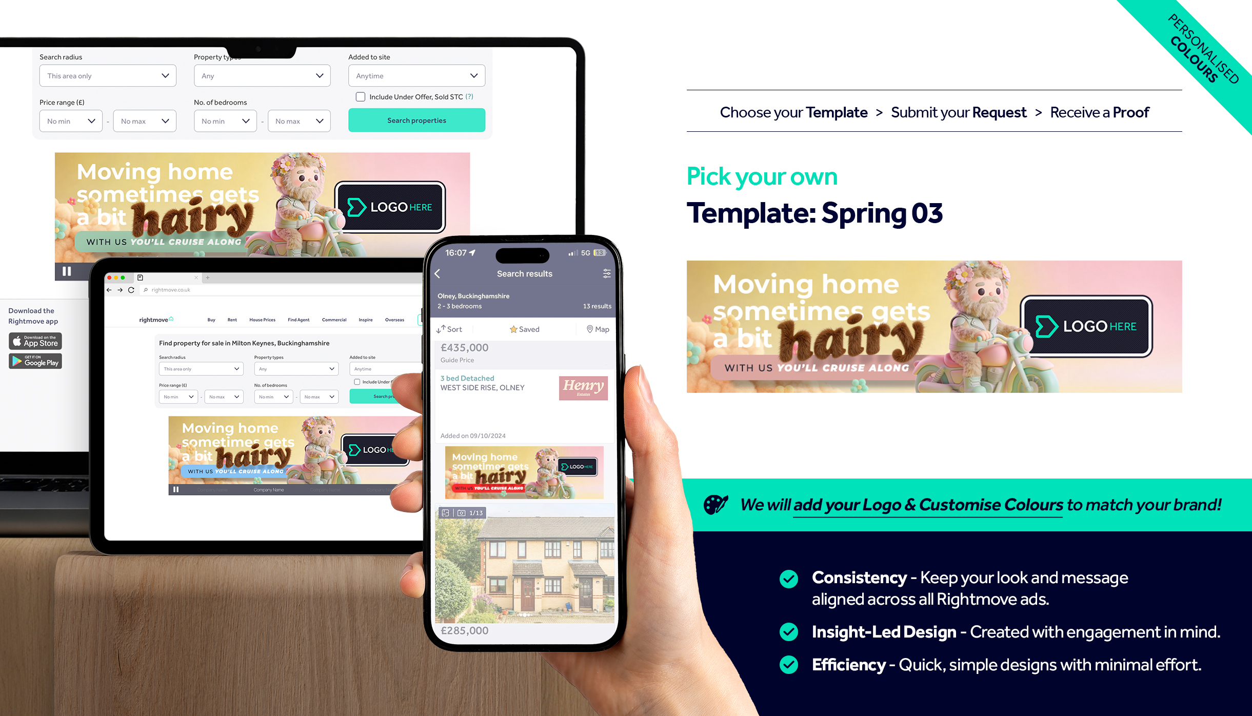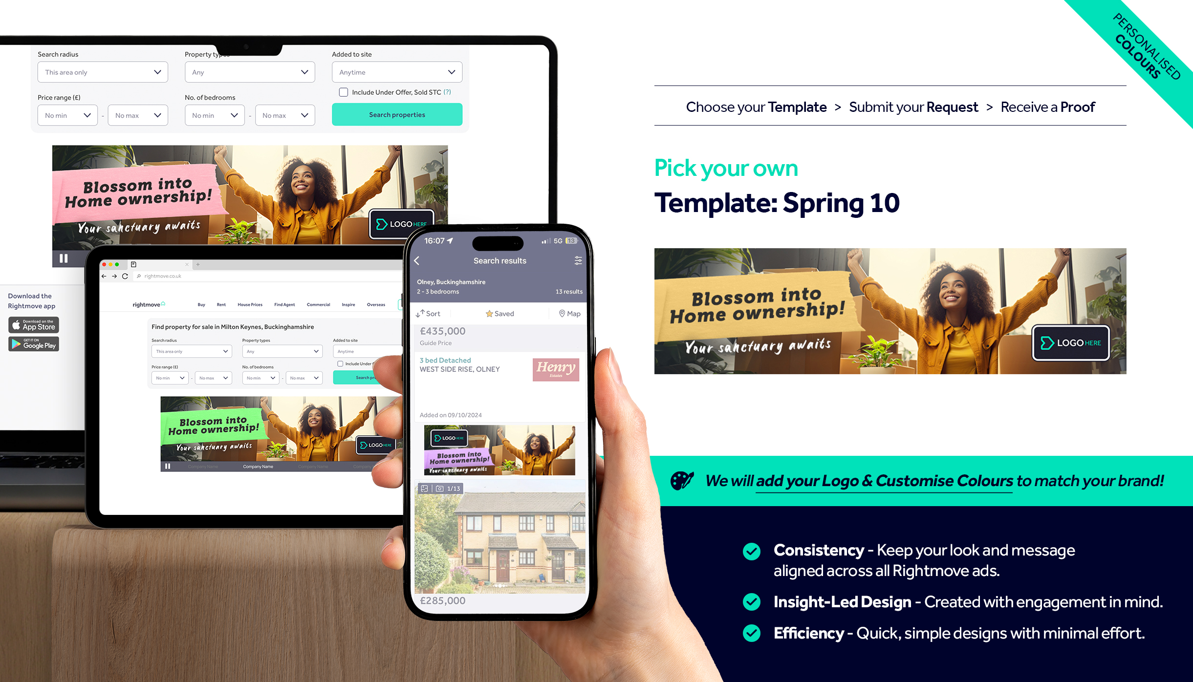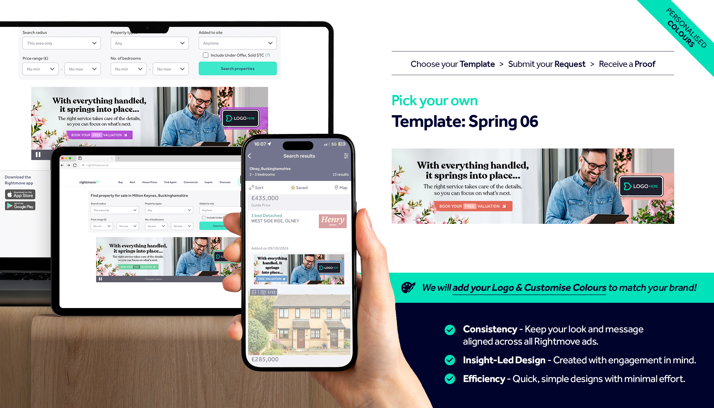 Simply select your preferred design and we’ll tailor it with your logo and branding colours.