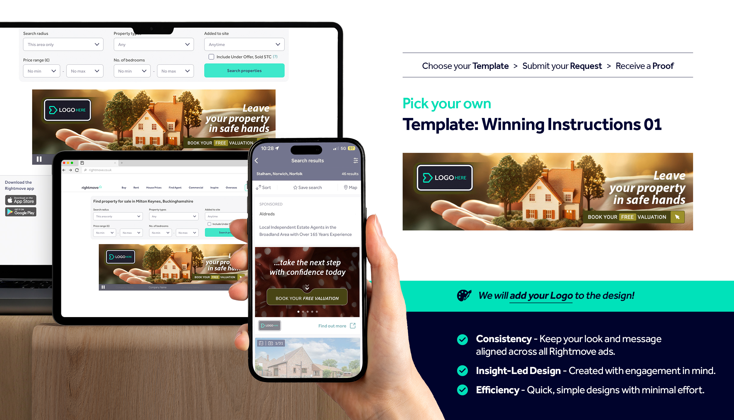 Simply select your preferred design and we’ll tailor it with your logo and branding colours (if applicable).